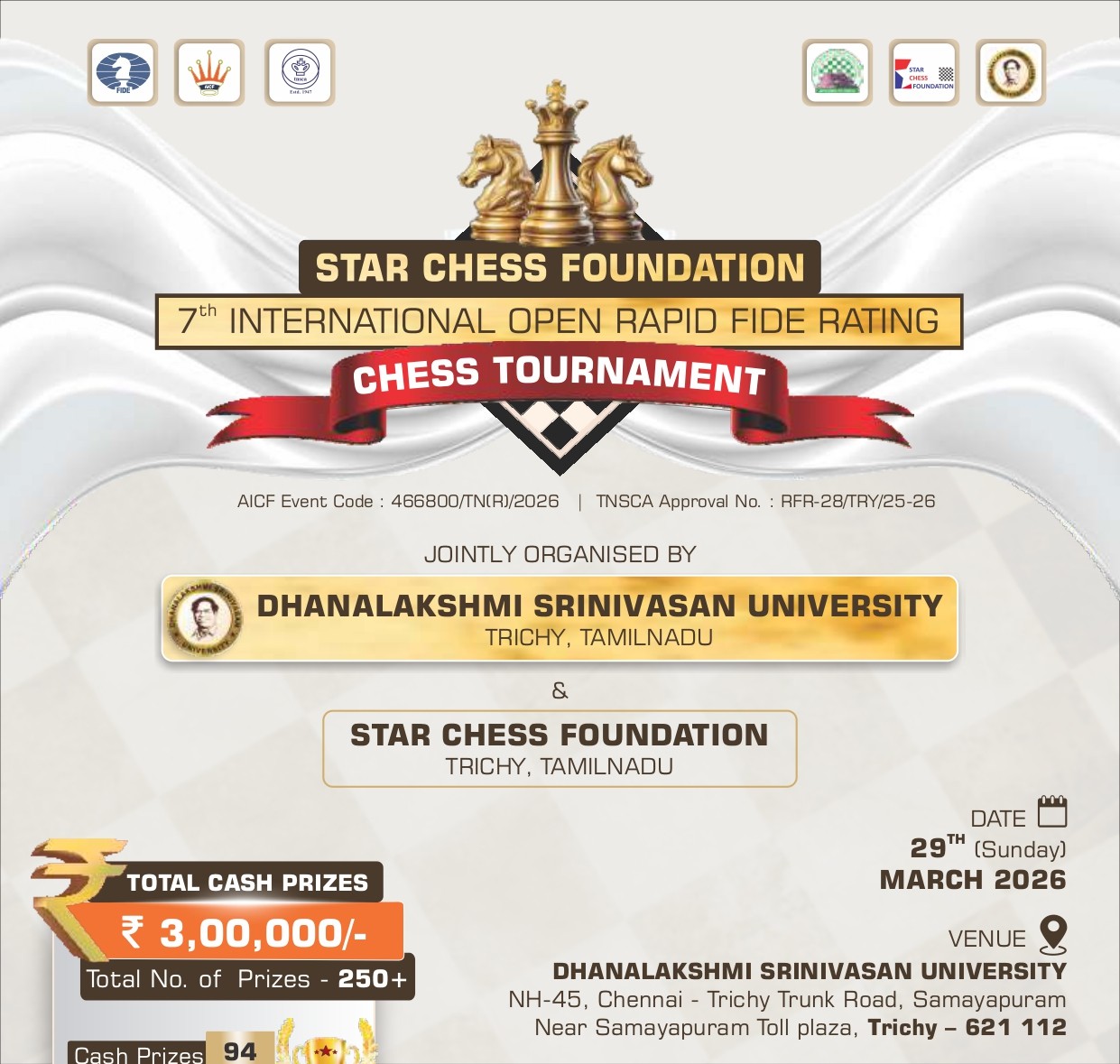 1st DANNES ALL INDIA OPEN FIDE RATED CHESS TOURNAMENT 2026 – 30 APRIL