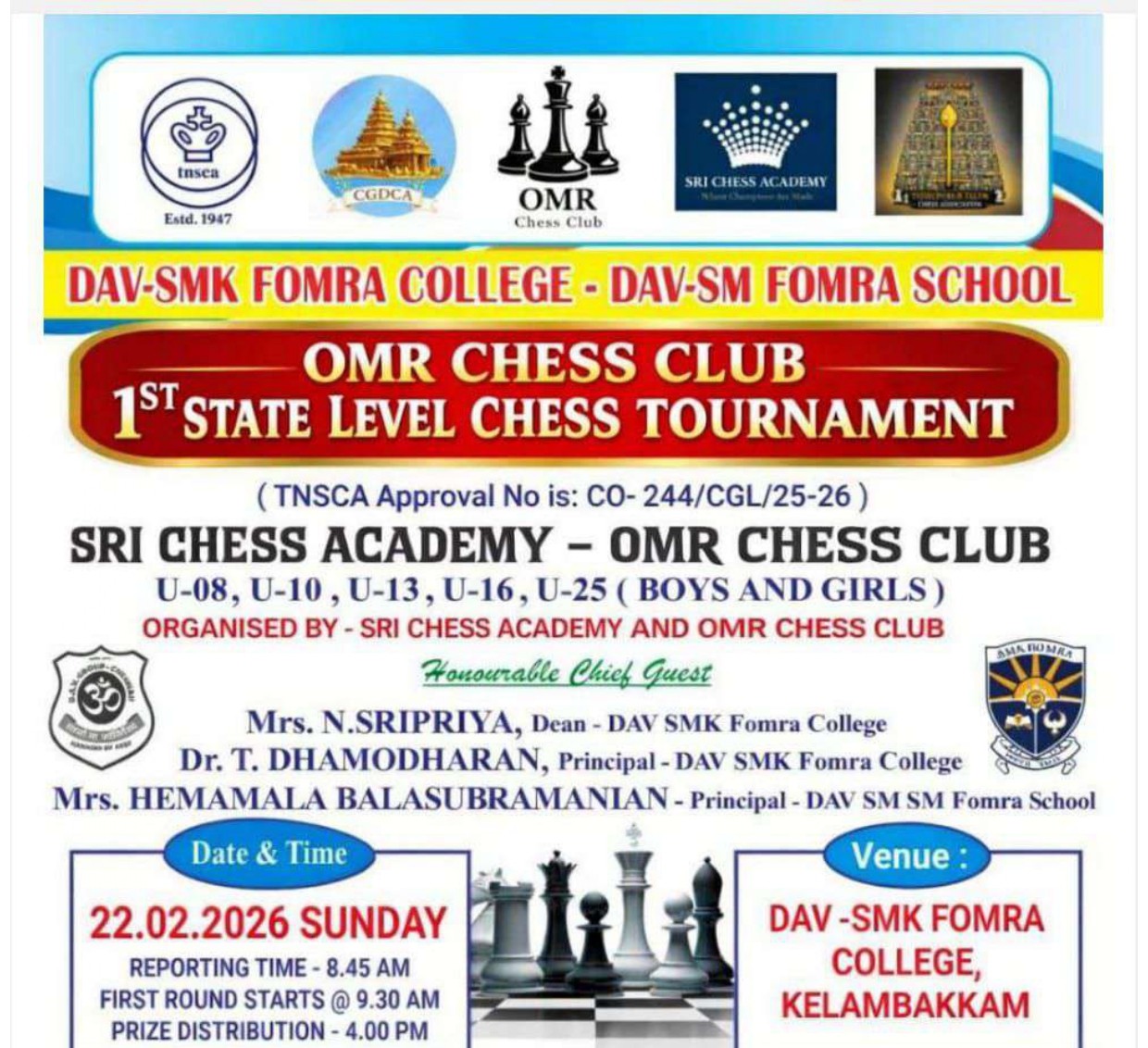 - DAV-SMK Fomra College, Kelambakkam, Chengalpattu
